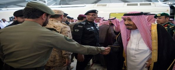 كما كان في استقبال جلالة الملك صاحب السمو الملكي الأمير سعود بن خالد بن الفيصل نائب أمير منطقة المدينة المنورة وصاحب السمو الملكي الأمير فهد بن فيصل بن سلمان بن عبد العزيز وصاحب السمو الملكي الأمير أحمد بن فيصل بن سلمان بن عبد العزيز وصاحب السمو الملكي الأمير أحمد بن فيصل بن سلمان بن عبد العزيز. معالي رئيس بلدية المدينة المنورة المهندس محمد العمري ممثل امارة المدينة المنورة وهيب السهلي قائد مديرية المدينة المنورة واللواء عبد الله القحطاني مدير شرطة المنطقة اللواء اللواء عبد الهادي الشهراني وشيوخ بارزون وكبار المسؤولين.